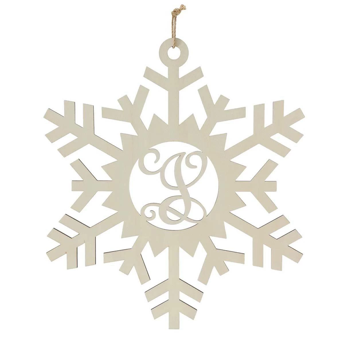 Add some winter flair to your home with the Department 56 17-inch Hanging J Monogram Snowflake.