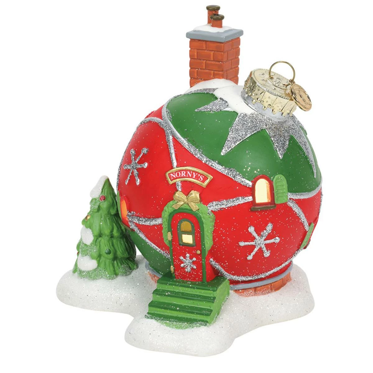 This new residence at the North Pole is the ultimate in upcycling! Norny has turned a shiny red ornament, complete with a tag and signature brass hanger, into his new abode.