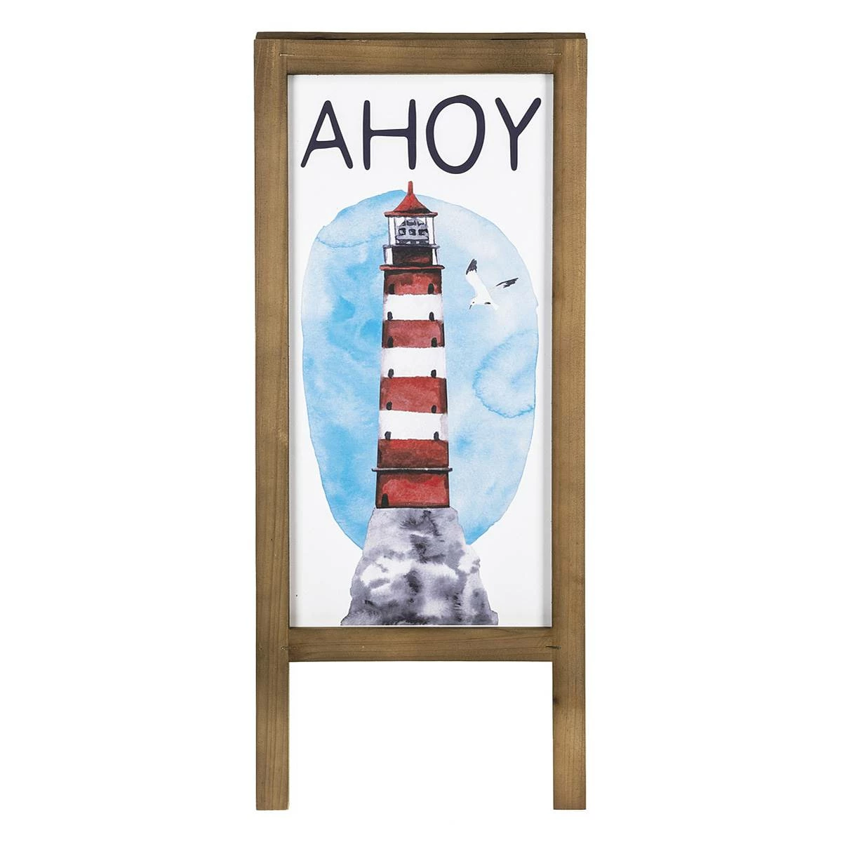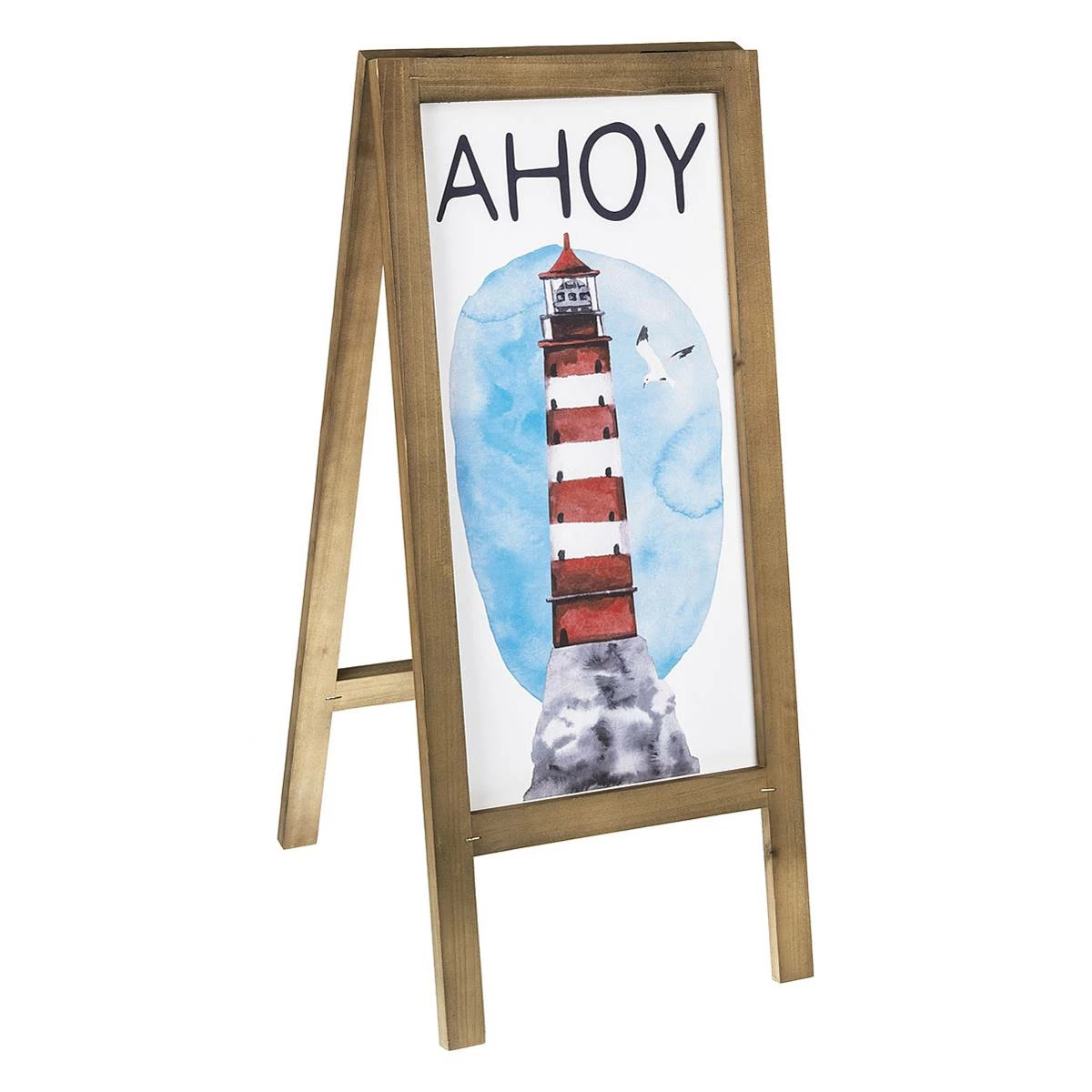 Add a nautical touch to your home with this Ganz Ahoy lighthouse easel wooden sign. Perfect for an entryway, as an accent piece in a beach-themed room, or on the patio.