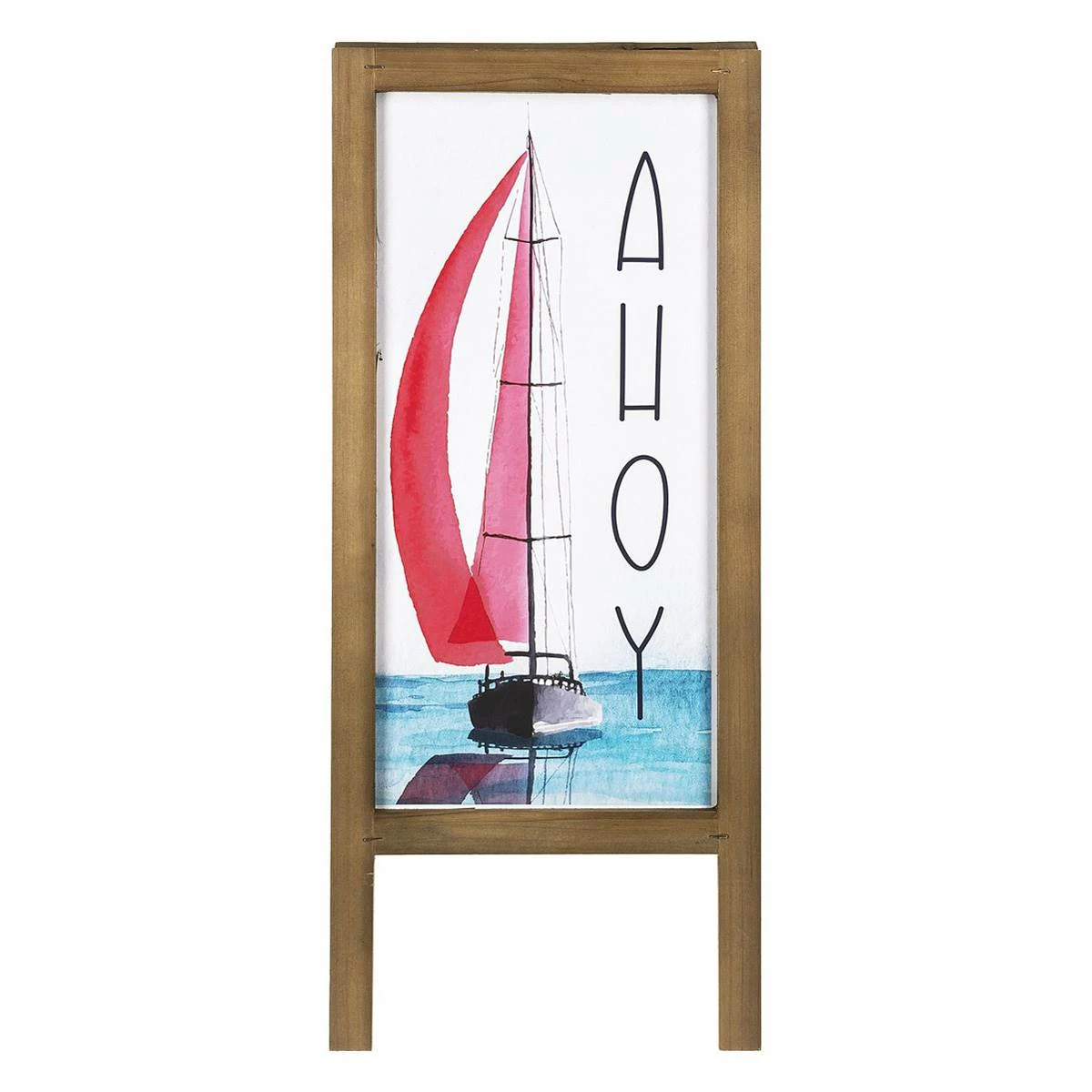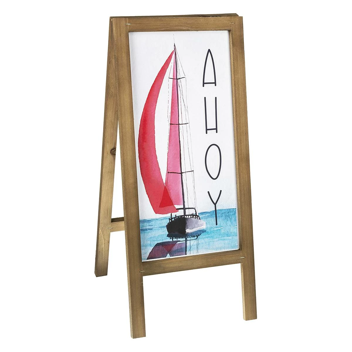 Add a touch of the sea shore to your home with the Ganz Ahoy sailboat easel wooden sign. Perfect for an entryway, as an accent piece in a beach-themed room, or on the patio.