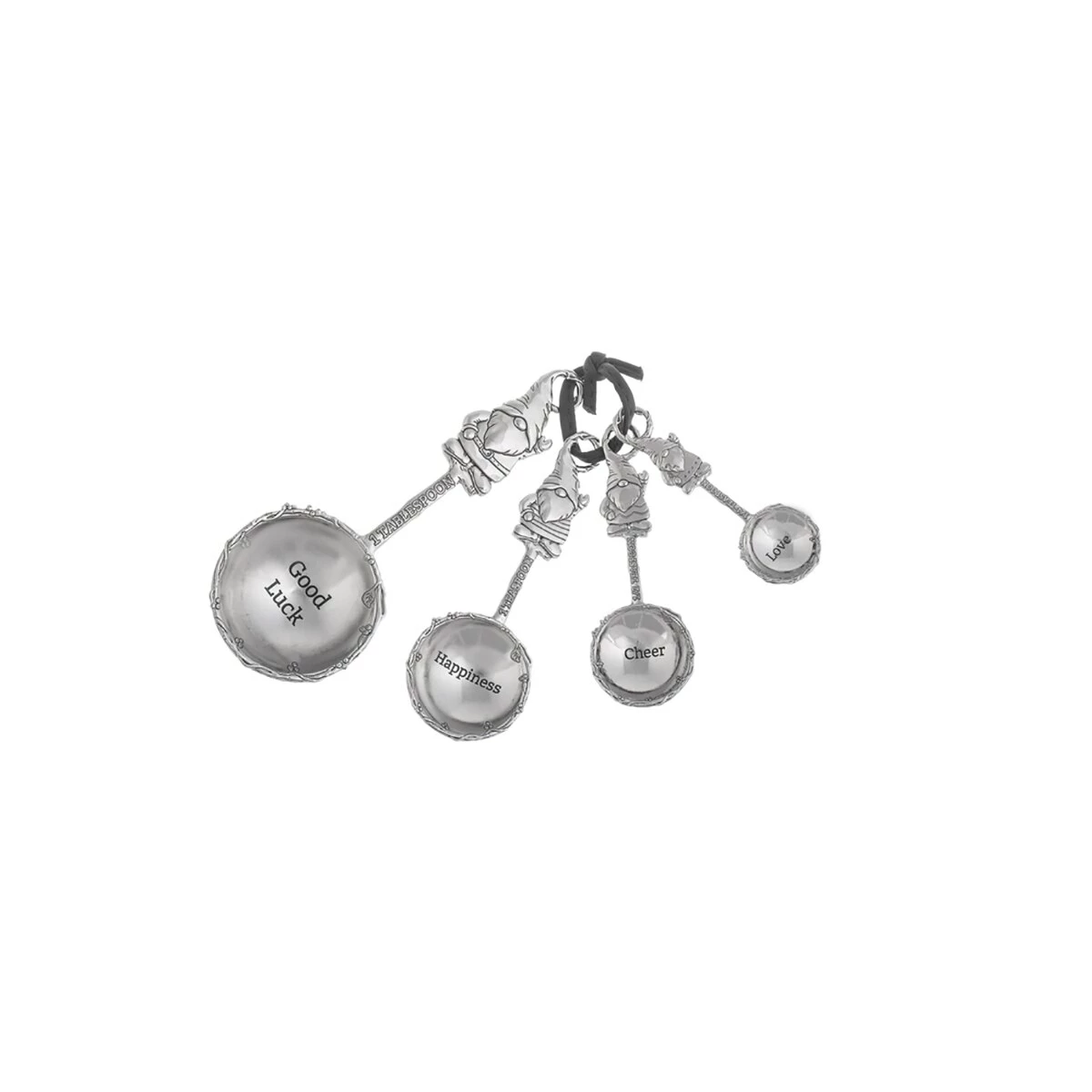 The Ganz gnomes measuring spoons – set of 4 is perfect for functional use and decorative display in the kitchen. Spoons are made of zinc metal with a silver-tone finish. Measuring spoons measure approximately 5.25 inches long.