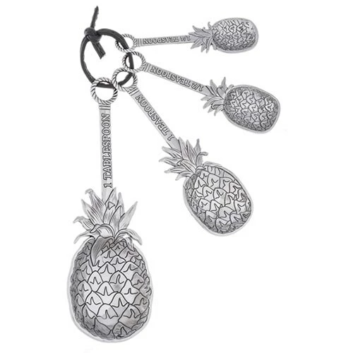 The Ganz pineapple measuring spoons will make a great gift for your family and friends. The pineapple is a traditional symbol of welcome and hospitality in the home. These spoons provide a unique combination of style and function. The spoon set includes a 1/4 teaspoon (3 inch), 1/2 teaspoon (3.25 inch), 1 teaspoon (4 inch), and 1 tablespoon (5.25 inch).
