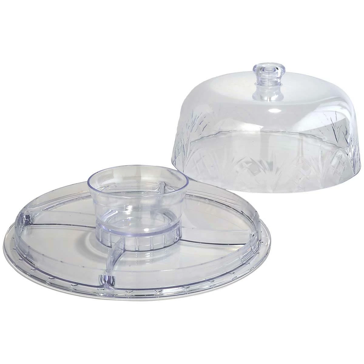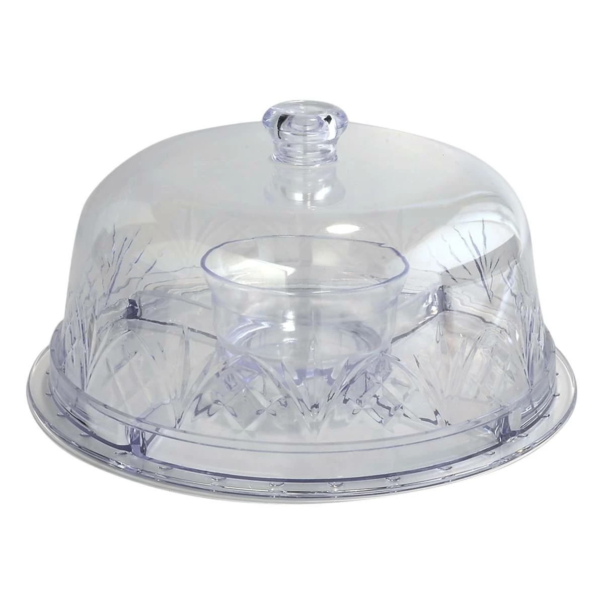 This Godinger Dublin acrylic 6-in-1 cake plate and serve dome is perfect for everyday entertaining. You can use it as a cake dome, punch bowl, salad bowl, to cover cruditΓ©s, or as an hors d’oeuvres plate with a dip server.