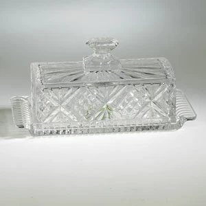 The Godinger Dublin Covered Butter Dish is adorned with the sparkling wedge and diamond cuts that are the hallmarks of classic Irish design. This butter dish has been created from 24 percent lead crystal to ensure that it has the heavy weight and brilliant look your table deserves. Hand washing is recommended for best care. This butter dish measures 4″ x 8″ x 3 1/2″.When ordering multiples of this item, additional shipping fees may be charged. Before levying such charge, we will contact you with the proposed amount of the charge. If you do not want to accept the surcharge, we will cancel your order without any penalty to you.