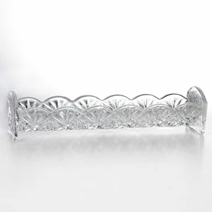 Godinger Dublin Crystal cracker tray features charming scalloped edges and the intricate starburst pattern of Godinger’s popular Dublin crystal collection. Measures approximately 9.5″ long, 2″ wide and 1.5″ deep. Hand washing is recommended.Order Information