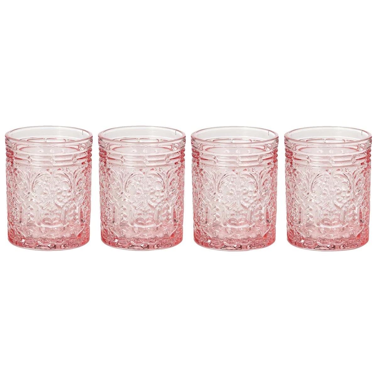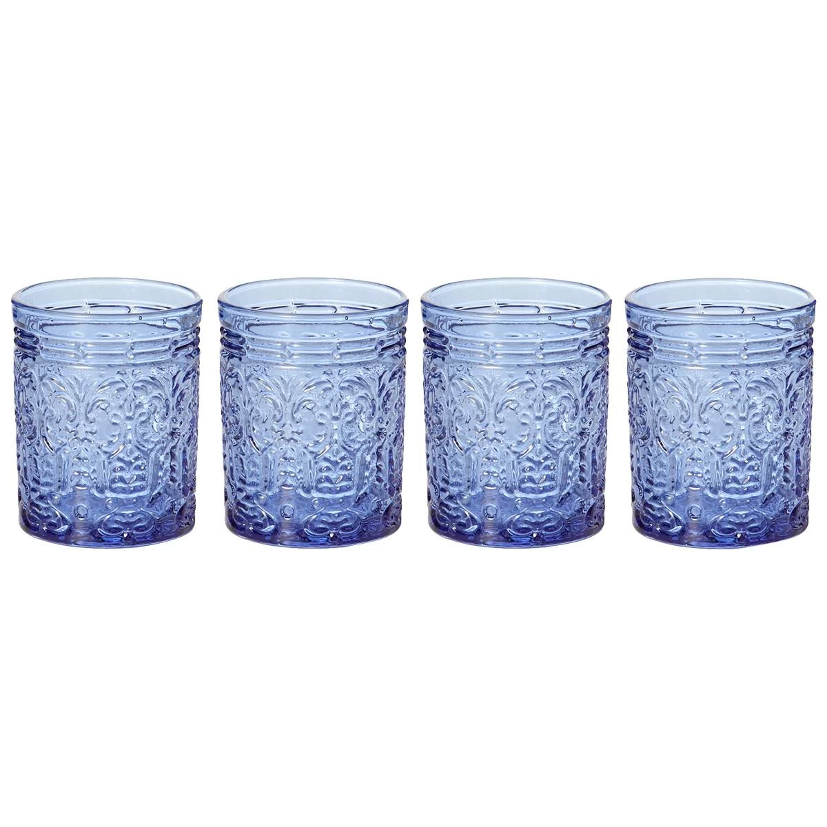 Bold and unique, the Godinger Jax set of 4 double old fashion is a great addition to your drinkware collection. Chic glass is decorated with intricate embossed designs for a textured feel in hand.